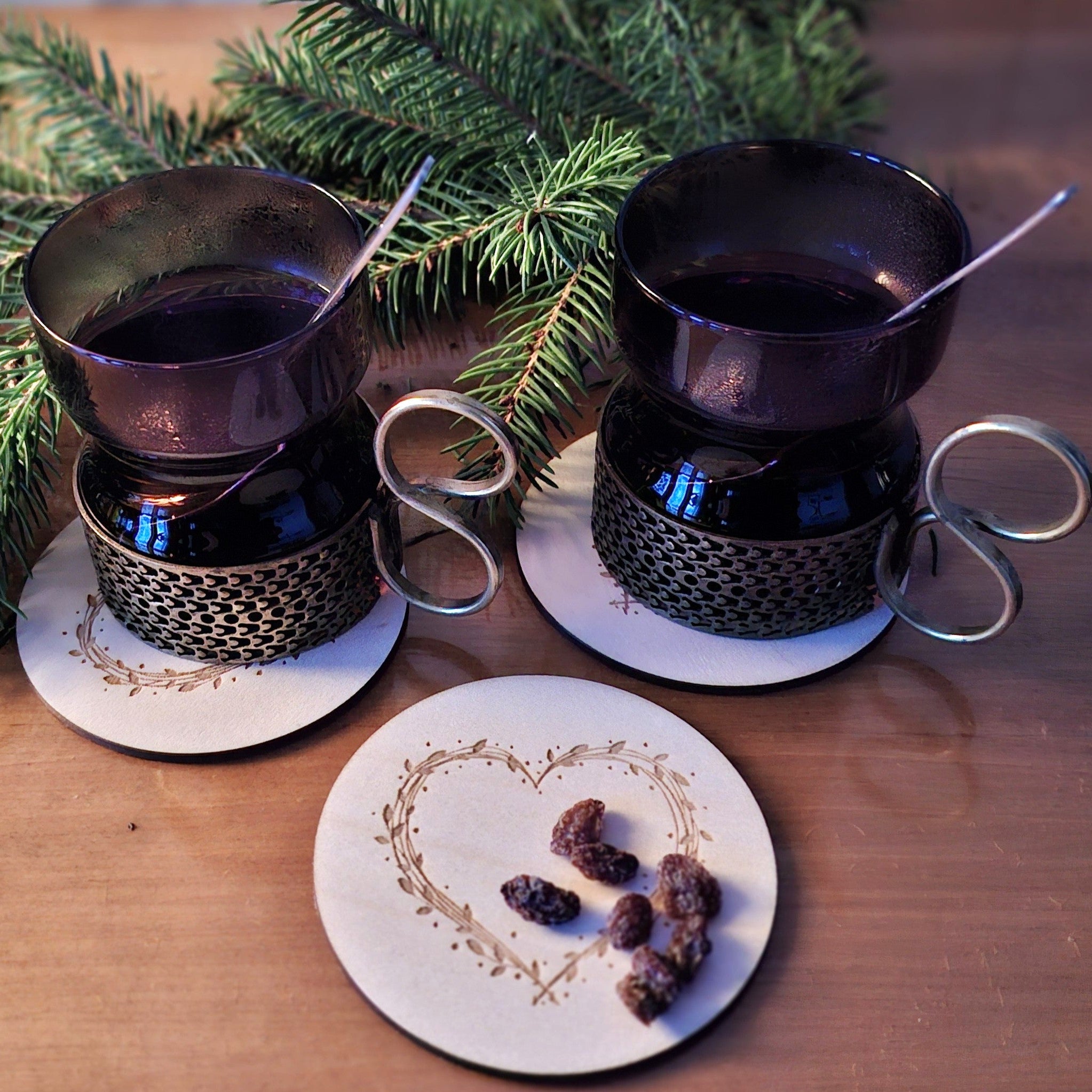 Sydänkoristeiset, halkaisijaltaan 9 senttimetrin kokoiset lasinaluset saat mustana ja koivunvärisenä. Sydän kuvastaa lämpöä ja rakkautta, jota ei koskaan ole liikaa. Aluset sopivat siis käyttöön ympäri vuoden!